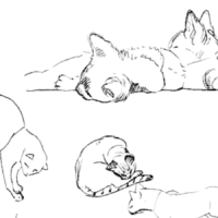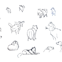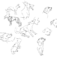 During the pandemic, I switched from drawing animals in real life, to drawing animals from videos. To get closer to the life drawing experience, I never paused the videos. I can say that after 100+ dog drawings I felt a lot of progress, and became able to capture the dog’s attitude and movement quickly, with just a few lines. Later I coloured some of them digitally. Here is a small selection, but you can find all of them at the link below: